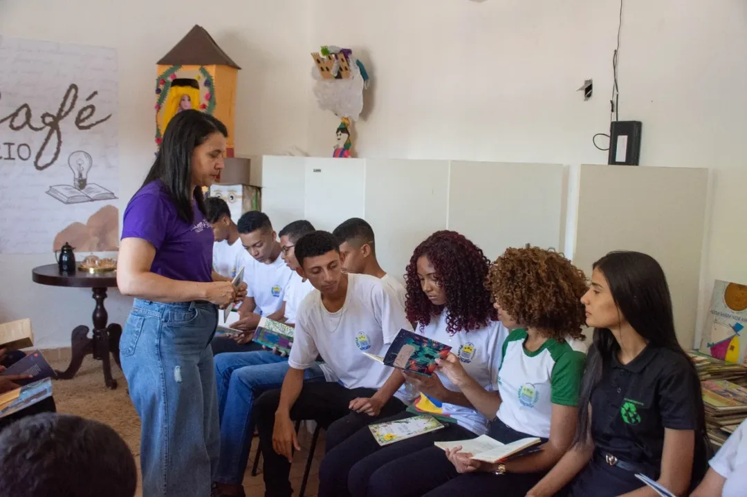 Alunos do 3º ano do curso técnico em Meio Ambiente, do CETI Deputado Francisco Antônio, participaram nesta segunda-feira (26) de uma edição do Café Literário, realizada na Biblioteca Municipal de São João do Piauí. O encontro foi promovido como parte das ações de incentivo à leitura e formação cultural entre os jovens do município.