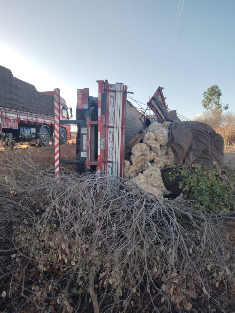 Na manhã de ontem(29), um caminhão carregado de batatas tombou na curva do Capim Grosso, localizada na rodovia PI-141, a cerca de 20 quilômetros de São João do Piauí. O acidente ocorreu nas primeiras horas do dia. Ninguém ficou ferido.