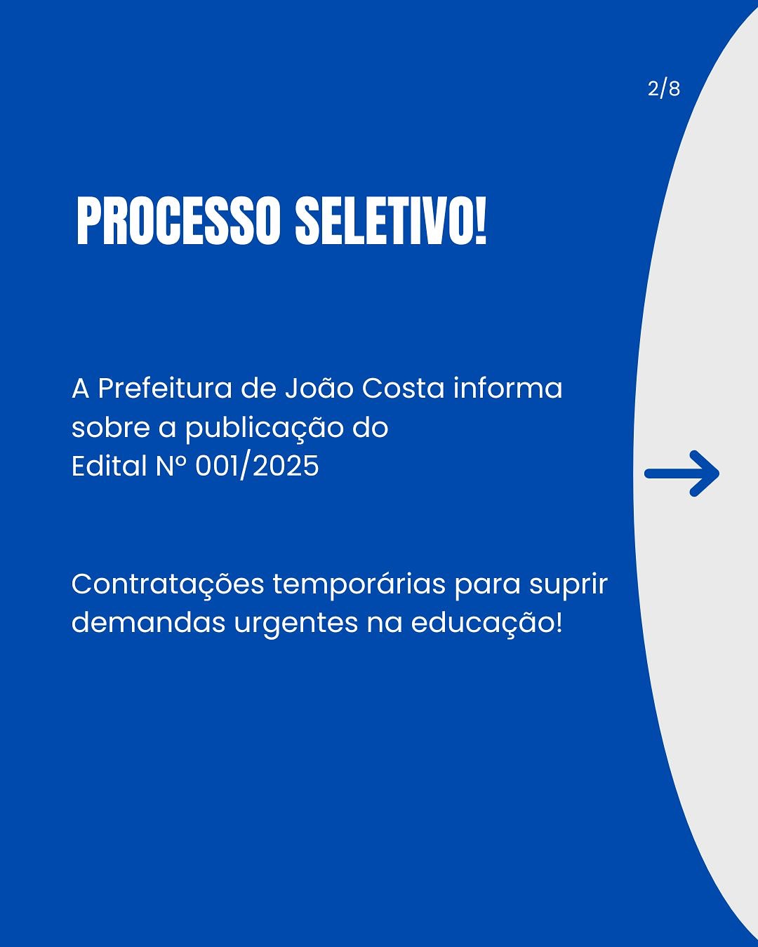 A Prefeitura de João Costa anunciou que o prazo final para as inscrições em seu Processo Seletivo Simplificado (Edital nº 001/2025) se aproxima. Candidatos interessados em preencher vagas temporárias em diversas áreas da administração municipal têm somente até esta quinta-feira, 12 de junho, para efetuar a sua inscrição.