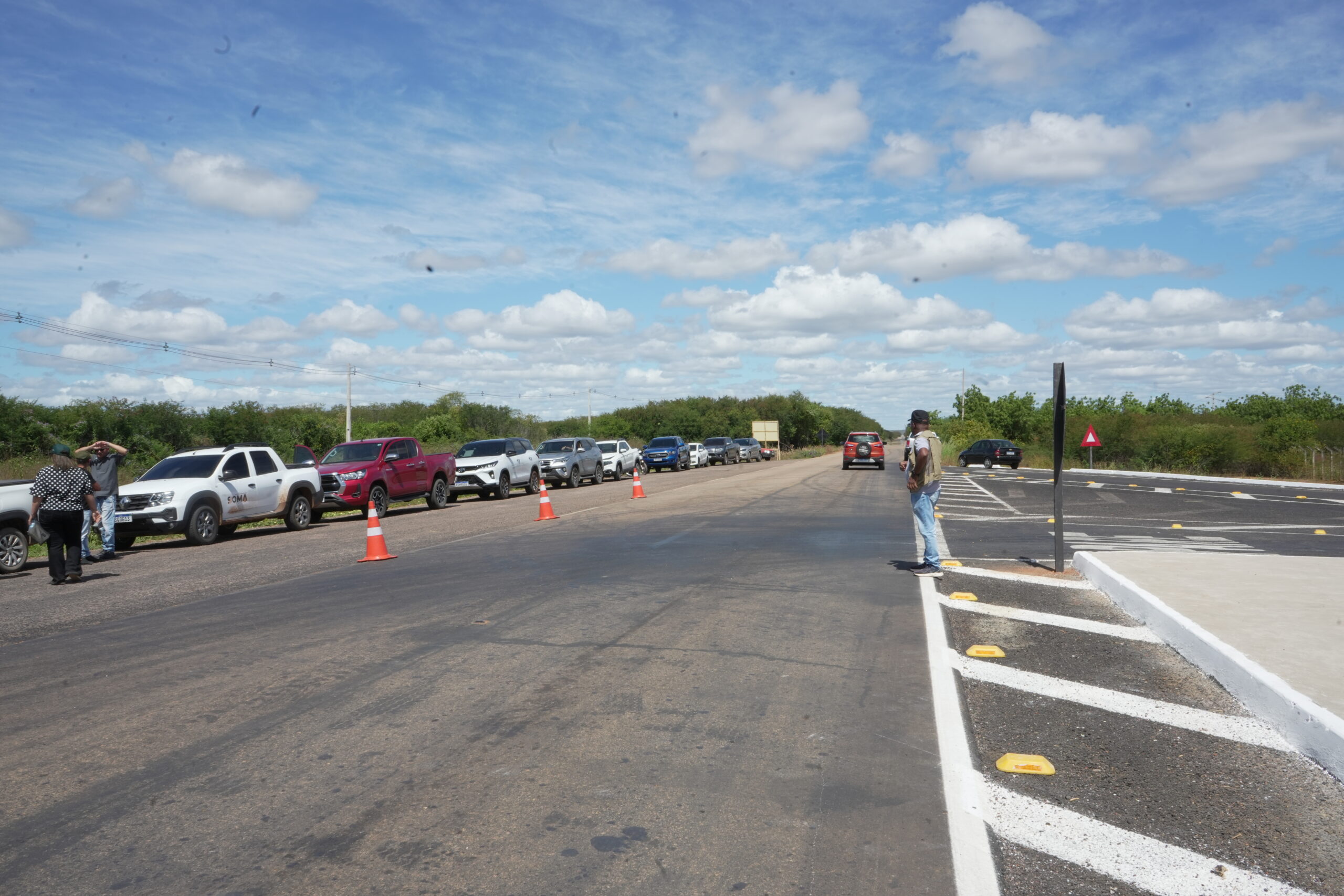 O primeiro compromisso do dia foi a inauguração do anel viário da cidade, uma obra de 5,82 km de extensão, orçada em R$ 8.814.604,40. O trecho foi nomeado em homenagem a Joaquim Antônio Neto, o “Joaquim de Félix”, pai do ministro Wellington Dias, que era caminhoneiro. Familiares do homenageado, incluindo a mãe do ministro, Dona Teresinha de Araújo Dias, estiveram presentes na cerimônia.