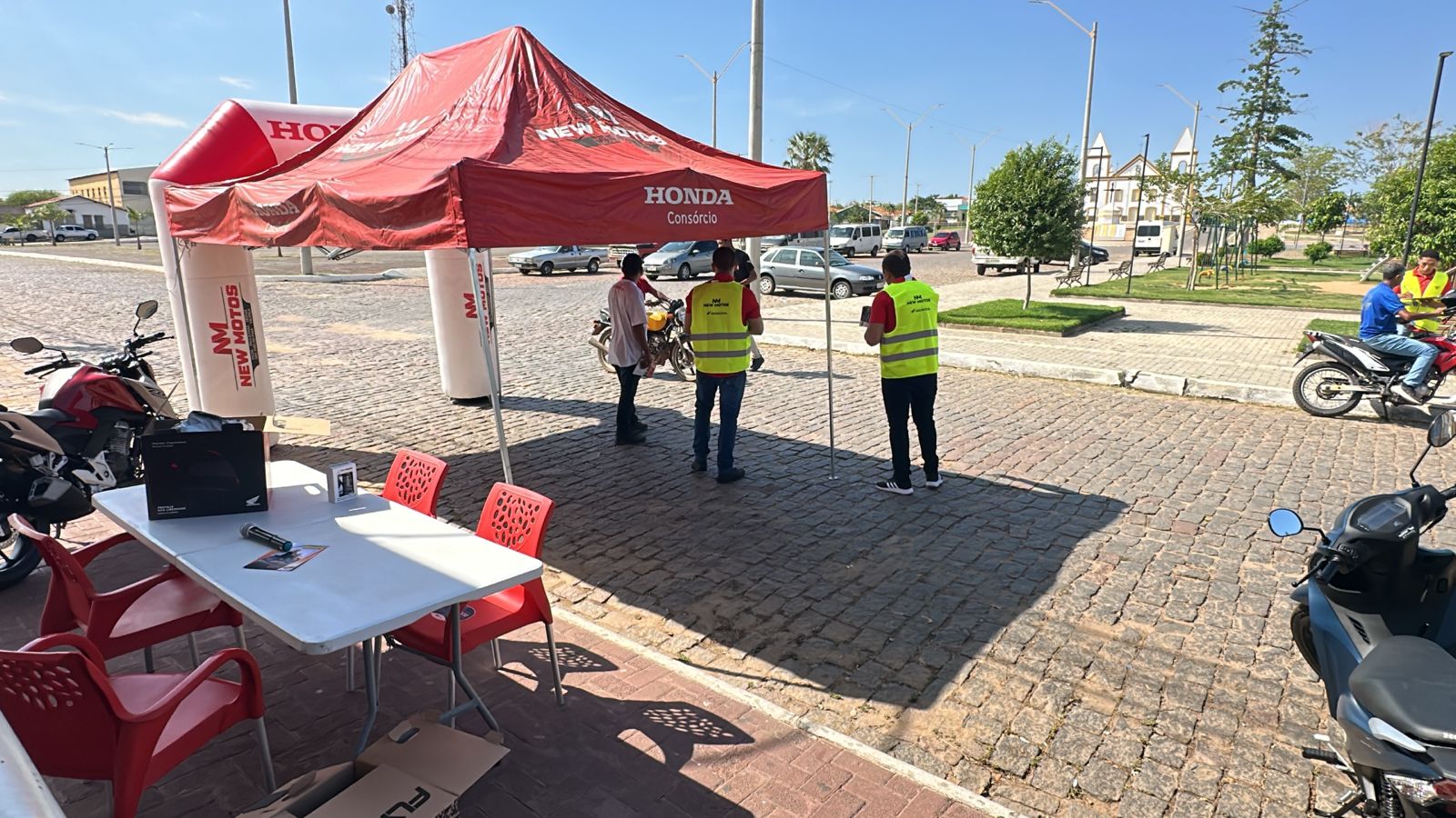 Na manhã desta segunda-feira (10), a Praça Honório Santos, em São João do Piauí, foi palco de uma ação voltada à conscientização no trânsito. O Pit Stop Educativo, promovido pela New Motos, reuniu motociclistas da região em uma mobilização que reforçou o tema “A paz no trânsito começa por você!”.