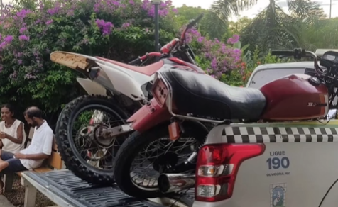 De acordo com informações da PM, por volta das 16h30 a equipe de serviço recebeu denúncias acompanhadas de fotos e vídeos mostrando dois indivíduos realizando “grau” com duas motocicletas — uma CRF de cor vermelha e branca e uma Honda vermelha — ambas sem placas de identificação. As manobras colocavam em risco a vida dos condutores e de terceiros que trafegavam pela via.