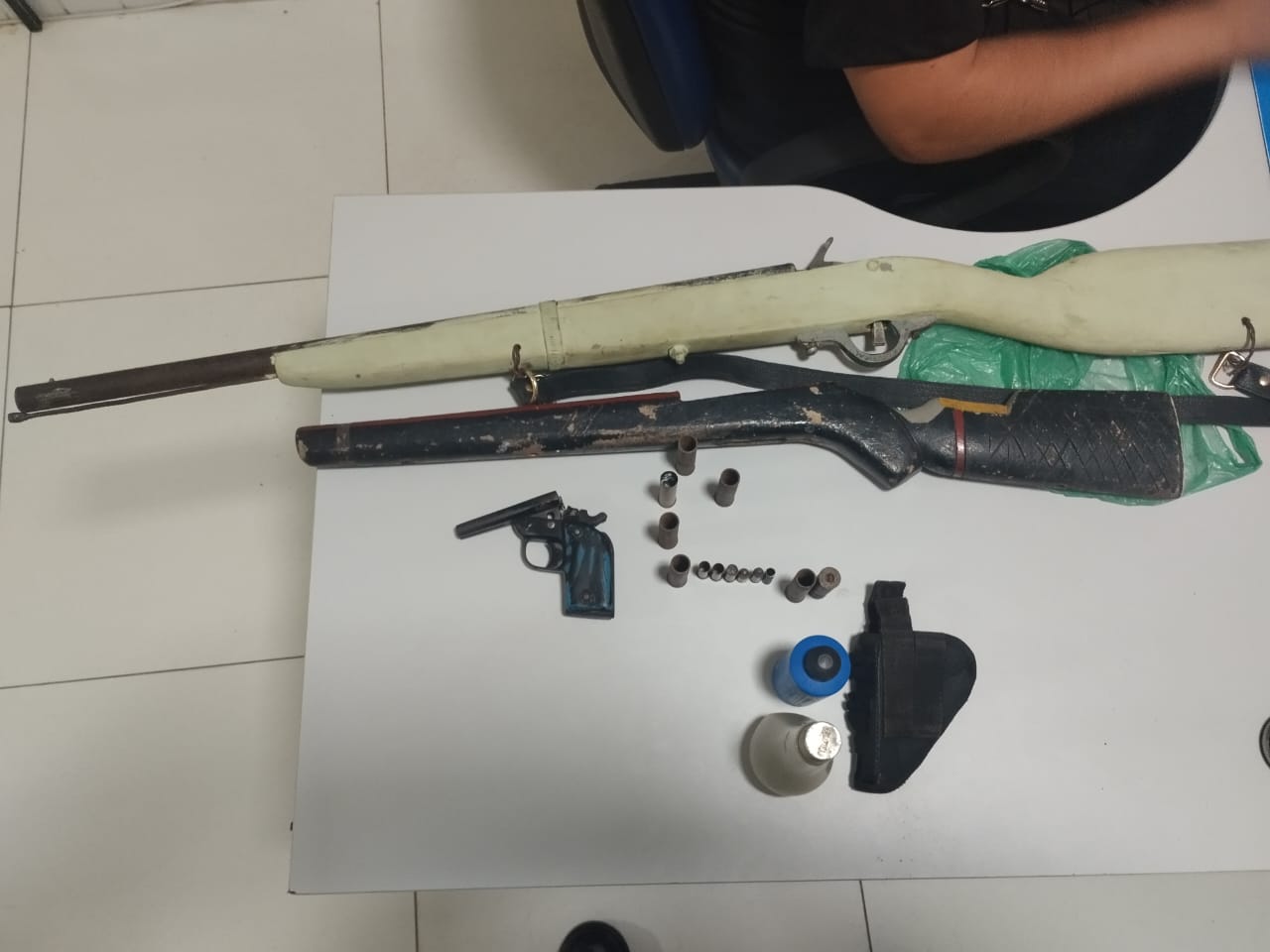 01 Munição cal. 380; 07 Munições cal. 22; 01 Artefato de Espingarda.